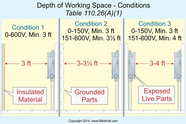 The basic requirement is for minimum clear distances of various depths for equipment operating at 600 V or less nominal depending upon voltage to ground and. These regulations are not intended to supersede applicable local building codes establishing higher standards. Given that elevator equipment.